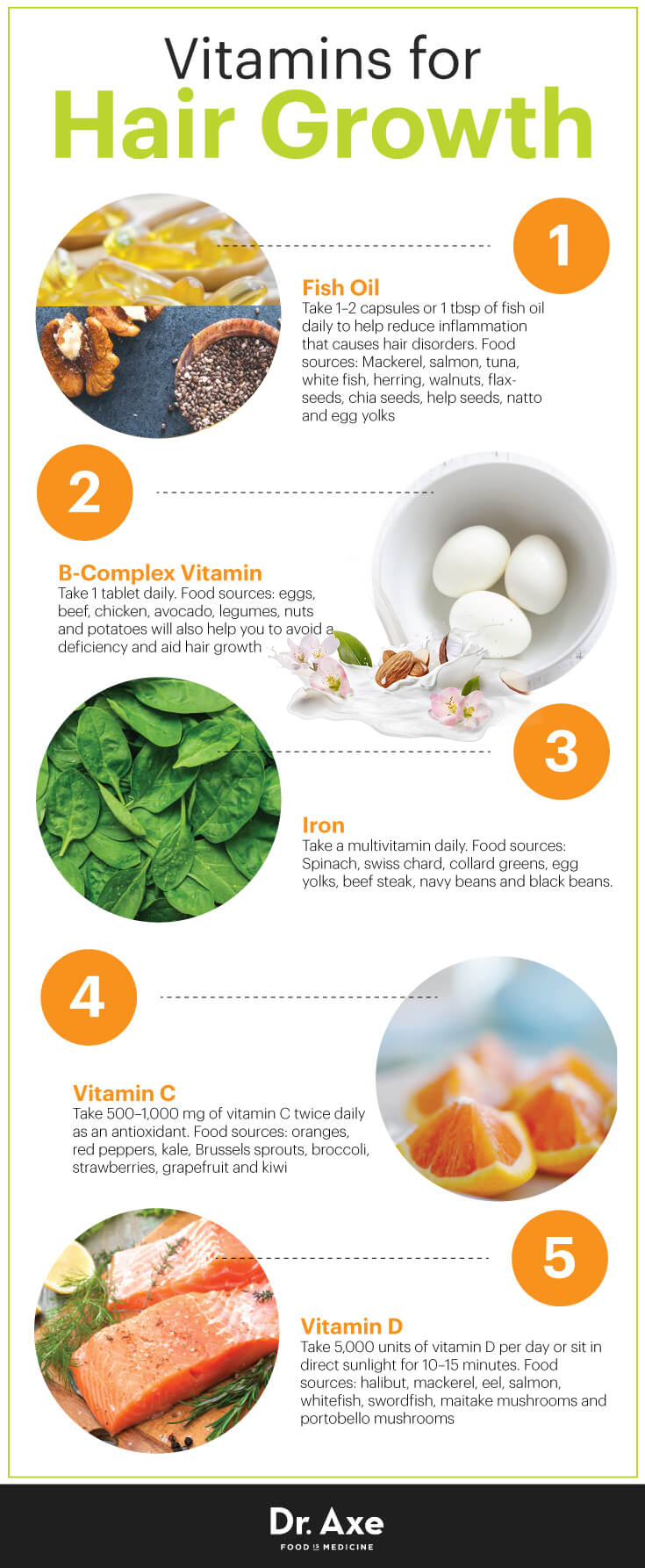 Để tăng cường sự phát triển của tóc, hãy bổ sung các loại thực phẩm giàu sắt vào chế độ ăn uống của bạn mỗi ngày. Ăn nhiều rau bina, rau cải xanh, lòng đỏ trứng, bít tết bò, đậu đen.