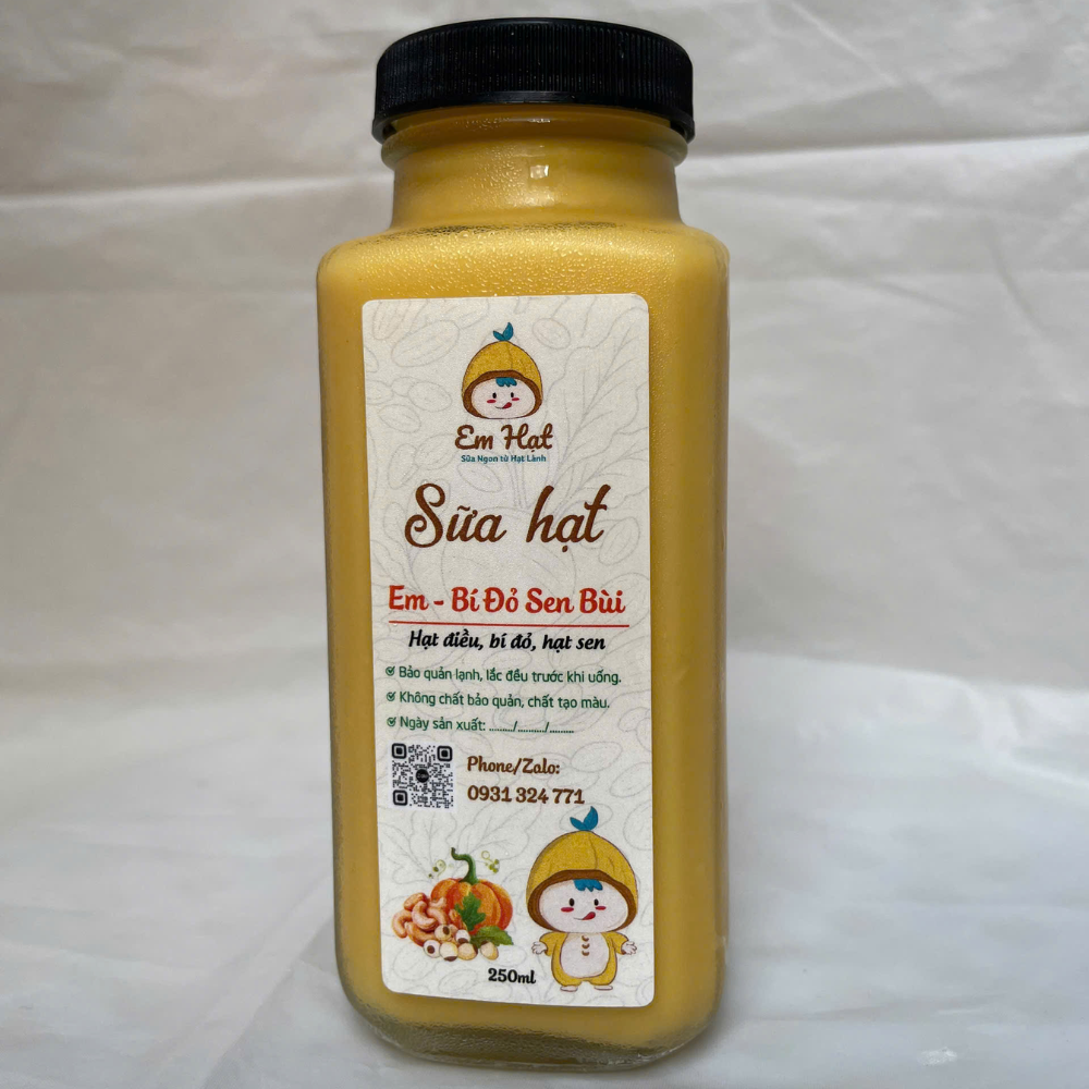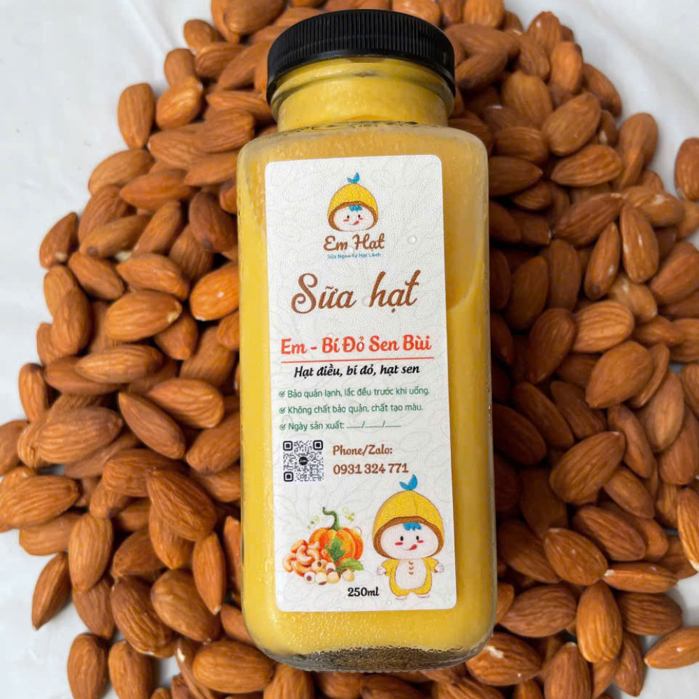 Đừng bỏ qua sữa hạt bí đỏ “Em Hạt” – Em Bí Đỏ Sen Bùi – sản phẩm kết hợp hoàn hảo giữa bí đỏ, hạt sen và hạt điều, đang rất được ưa chuộng.